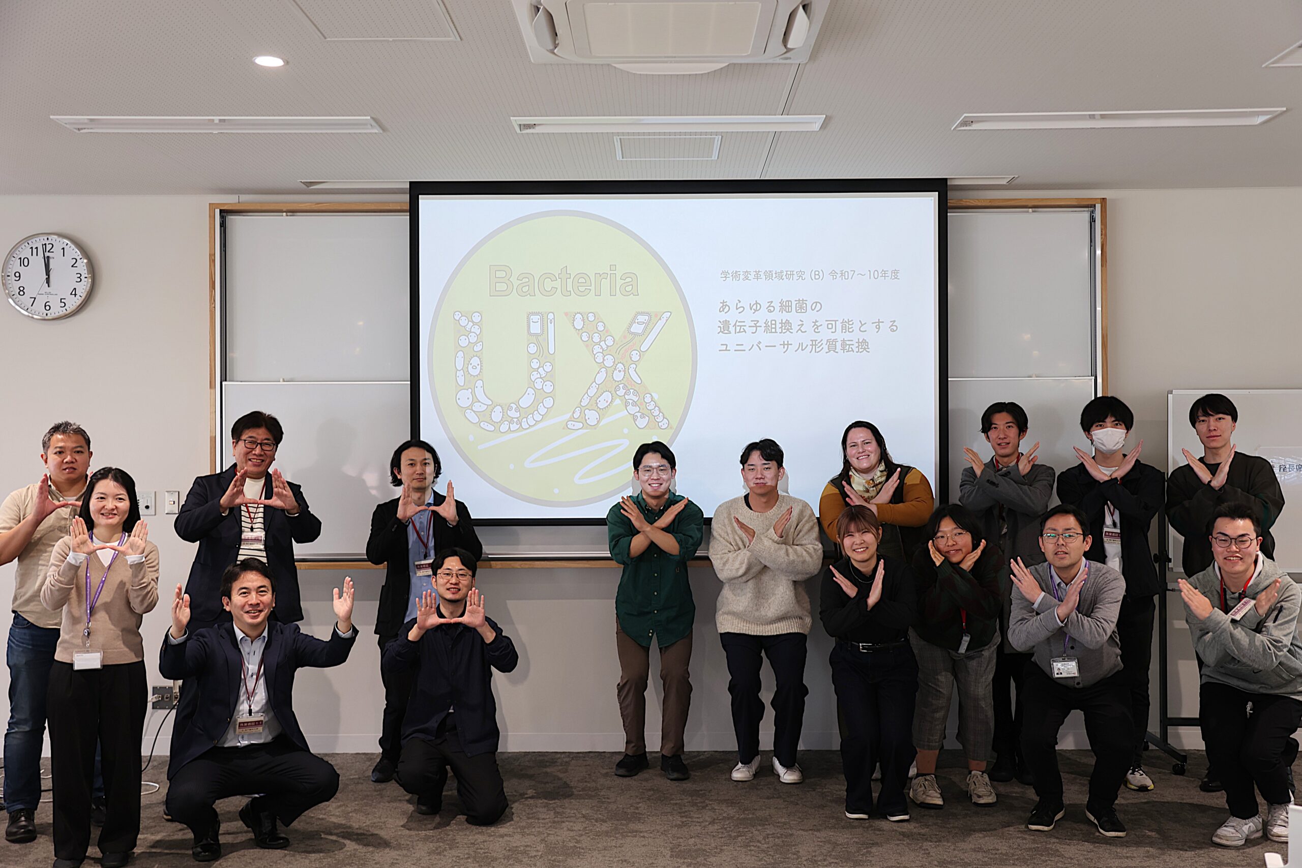 本領域では、細菌分子生物学(A01班)に加え、核酸化学(A02班)とナノバイオ材料工学(A03班)の技術を組み合わせることで、ユニバーサル形質転換の実現を目指します。自然界では外来DNAの侵入と複製を、実験室では組換えDNAによる形質転換を妨げている細菌のファイアウォールを突破するための基礎研究と技術開発を行います。